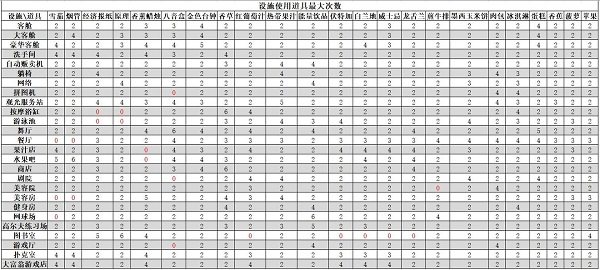 设施使用道具最大次数表