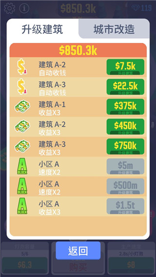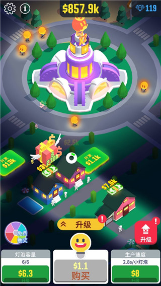 升级灯泡国王,获得更多的能量解锁建筑和街区。
