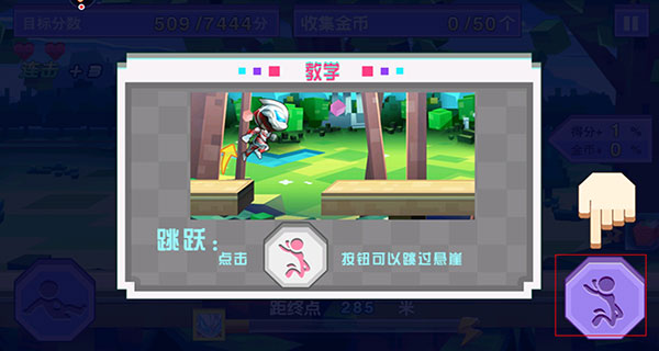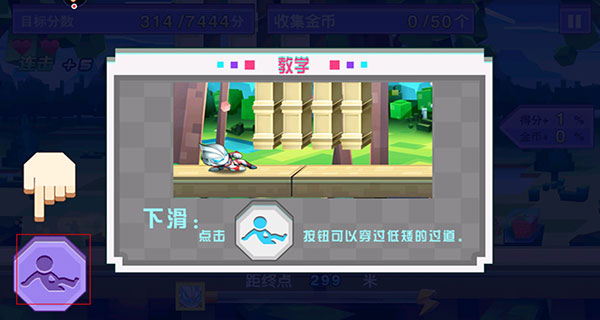 2、新手会有新手教程,以便于玩家更好、更快的熟悉游戏,点击左边按钮即进入下滑状态