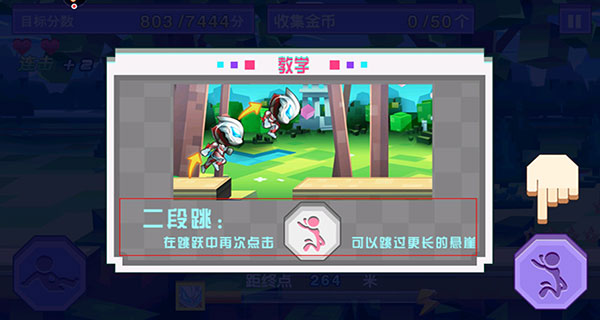 5、经典的两键操作冒失,灵活的使用二段跳等技能来躲避各种障碍物,吃到高分道具