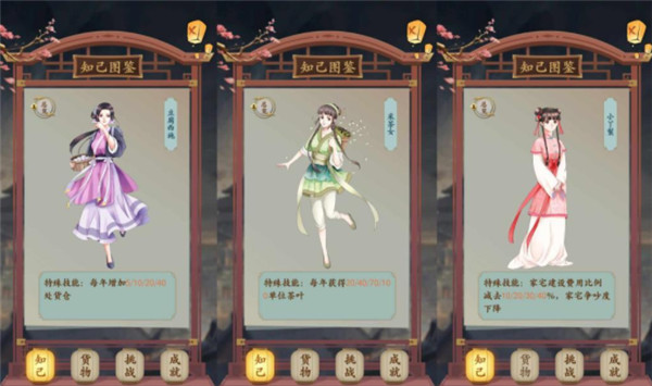4、到了游戏中期,采茶女和小家碧玉可以考虑换掉了,而大家闺秀和遗国夫人则是重点迎娶的知己对象,大家闺秀可以提升名声,而遗国夫人主要是建造家宅方面的作用。
