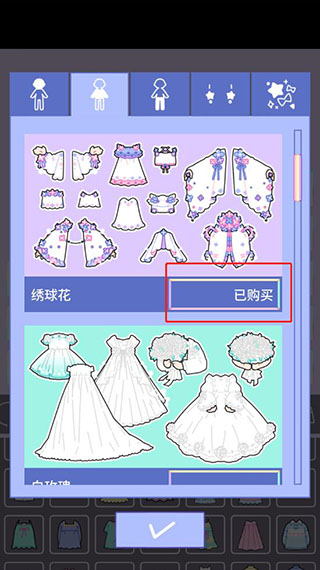 4、然后你就可以看到已购买啦,然后就可以为你的女孩换装啦!
