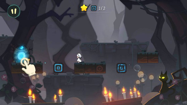 从晨曦来到了夜幕,夜幕中的机关方块都在泡泡里睡着,你需要踩中他们把他们唤醒,就可以放到需要放置的地方。需要注意的是踩碎泡泡并不算使用了方块,只有踩中唤醒后的方块才算使用了。所以一个方块理论上是可以使用两次的。要好好利用这个变化哦。