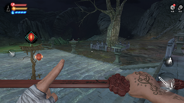 2、点击右下角进行攻击,靠近红色灯笼可以保存游戏进度。