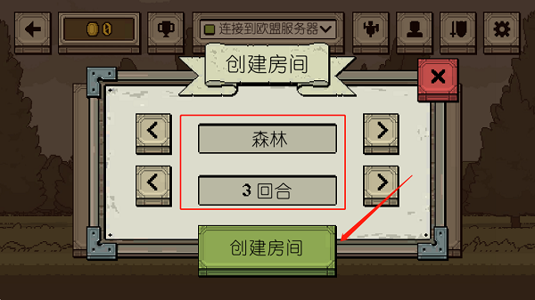 3、选择想要游玩的地图和回合数,接着点击创建房间。