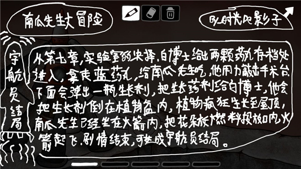 6、除了章节漫画外,游戏中还设置了日记系统,玩家需要在场景中拾取散落的日记碎片,从来拼凑出整个南瓜先生的故事。