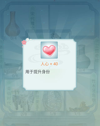 小主可通过每日打扫整理珍宝阁获得少量人心,同时上交珍宝可获得大量人心。(ps:珍宝可通过徒弟历练、出城系统等方式获得。)