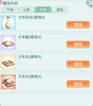 8、升级以才华为主的伙伴属性及资质(需消耗阅历。资质经验、强化书卷)或者是让以才华为主的伙伴们服用才华药水、才华散丸丹和才华属性的菜品来提升才华属性增加银两收益