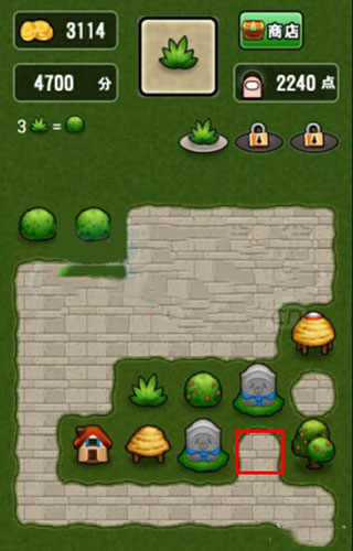 技巧一:同类的物品,尽量摆放在一起,这样才能够方便我们能够即使的进行升级,从而腾出空地,方便选择,如图所示,我们在其中放置的应该是草堆,这样就能够消除四个低等级草堆