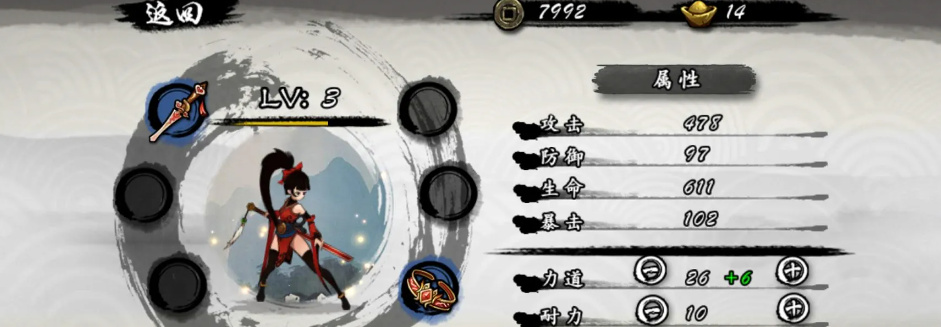 中期大家的装备都差不多了,就可以按照自己的属性来分配属性点了,操作犀利的玩家完全不用考虑耐力和体质两项,分配到力道和会心上就行。