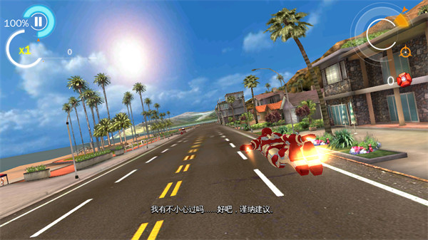 5、当我们设置好之后,进入游戏,便可看到钢铁侠正在飞行,接受任务。