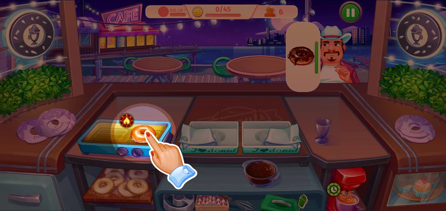 6、然后再点击做好的甜甜圈就可以给顾客了;