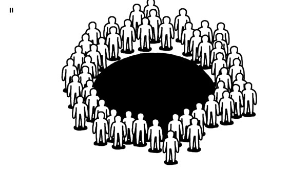 1、打开进入游戏,玩家直接进入游戏短片式的游戏过程中,面对黑白世界与一群小人