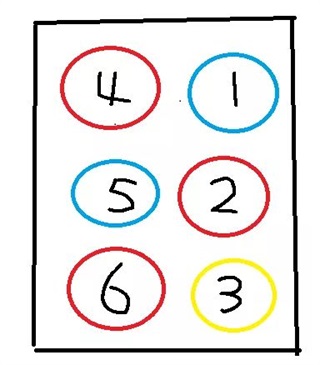 红色区域246我们称为三角区,也叫做核心区,摆放我们最重要的一个防卡和两个输出或控制,蓝色区域次之,摆放我们其次重要的人物,黄色区域最末,摆放我们相对最不重要的人物。当然了,我这样编号是为了让大家更清楚的认识三角区,你喜欢把156作为三角区也完全是可以的。