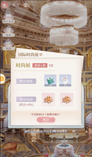 2、每天有一次机会免费举办展会,最多邀请5个玩家参展,参展人数越多积分越高哦!可使用“展会邀请函+展会批文”增加举办次数。