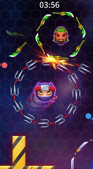 这是一款全新的趣味休闲手游,玩法新颖,魔性十足。游戏中玩家控制一个脸谱一样的角色,周围被环绕的刀片覆盖。各种特效画面,给你不一样的精彩对战体验。游戏地图中还有各种道具,障碍物,增加游戏的趣味性。刀剑大乱斗无限金币玩法