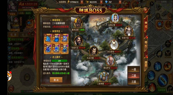 神域地图:可以获得各种神印装备增加战力,每爆出一个神印装备还能直接升1-2级!简直不要太爽!但此地图竞争相对激烈,建议玩家们先提升实力,或是召集公会队友一起进去抢BOOS。