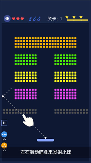 6、如果获得横条方块的话,会产生额外的三个小球来帮助玩家消除更多的砖块!