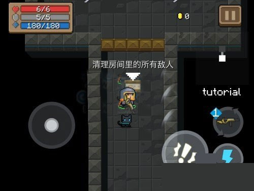 点击感叹号进行攻击,我们直接的进行移动攻击,子弹会进行自动的攻击,当然了近距离的武器需要我们靠近才能攻击到敌人。