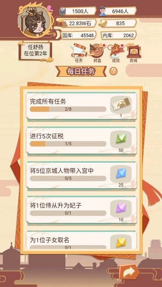 3、各项事物都需要你进行操劳,完成好自己作为皇帝的责任和成就。