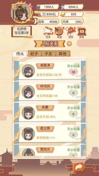 在这里你不光可以看到皇宫中的所有人物信息,还可以看到你在京城认识到的所有人。