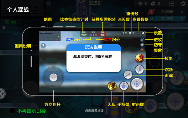 1、个人混战模式简介:游戏开始玩家会随机诞生在地图中的某个地点,游戏内见到的所有人都是敌人。