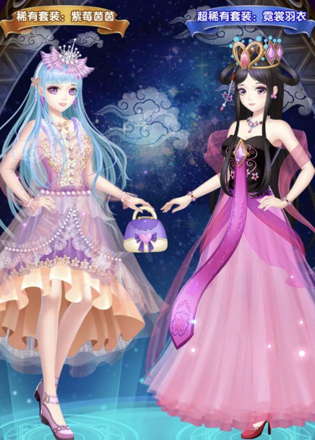 【许愿池 欧皇首选】"许愿池"中有着两款稀有套装——缤纷甜蜜的"紫莓茵茵"和古风古韵的"霓裳羽衣"。每次许愿后都有机会"套装部件"或者"魔法玫瑰",一定数量的玫瑰也可以兑换部件哦。