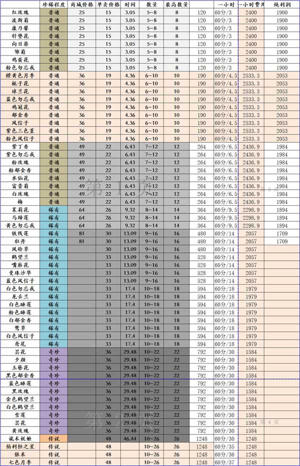 然后单卖的花就卖商城里价格高的,老鼠带回来的,除了特殊的依米,七色月季。(没时间的就种价格高,收获时间长的,有时间的种价格36的)