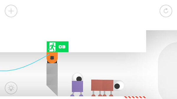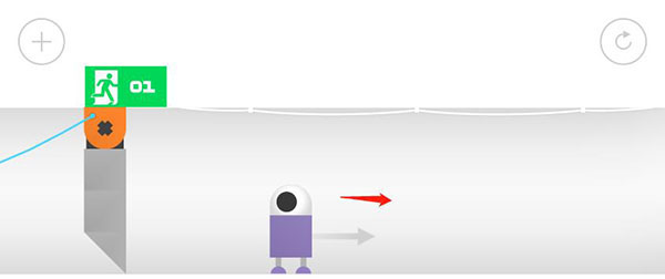 第16关控制机械臂夹住主角,然后向右移动后放开主角,主角走向终点。
