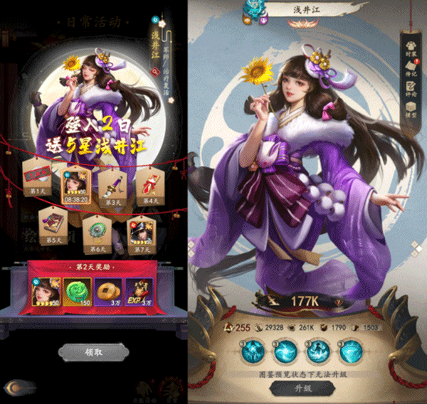 4、第二核心雷系德川家康,前期最强大的肉盾角色之一,既能分摊伤害又能回血,且100%的反击让他也拥有了不俗的伤害,是新手推图练级中不可缺少的好帮手。大家跟随主线就能获得第1个德川家康,任意金额首充即可获得第2个。