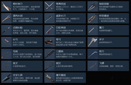 3、丰富的兵器类型,每一种兵器都有对应的武学秘籍,体验不同的战斗效果。