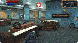 这是一款第三人称的射击类手游,3D品质,美术看起来不那么精致,细节设定还不错,玩法类似单机版的端游【收获日】。玩家主要扮演一个劫匪,主要目标就是去银行等地方掠夺,然后突破重重的封锁,最后等到支援,乘车逃跑,本次关卡就结束了。