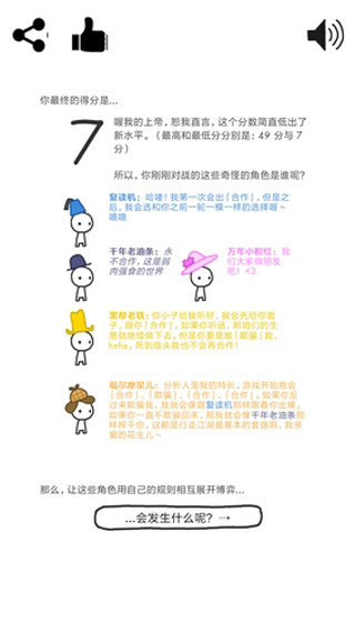 7分是信任的进化游戏玩家所能获得最低分数,众所周知平庸分数不上不下是最常见的,极端分数最高分和最低分都是很难获得的,实际上感觉就是别样的最高分,完完全全跟得分选择规律反着来也是很强了,那么怎么的选择策略才能让我们顺利获得7分呢?下文就为各位带来详细的攻略,希望提供些帮助。