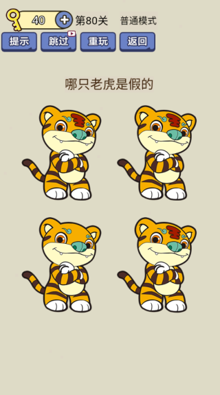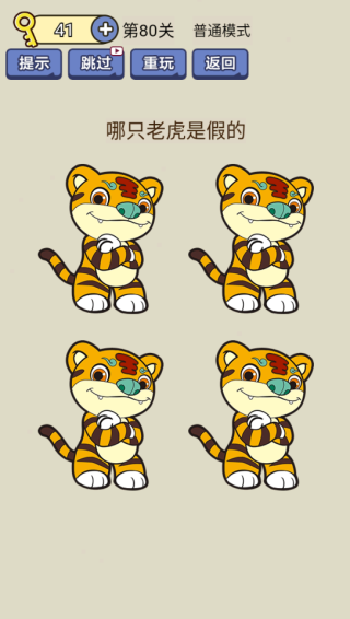 疯狂最强脑洞手机版第80关哪支老虎是假的?