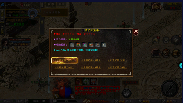 1、点击主线,进入副本刷怪升级,过程中可获得装备,钻石奖励!