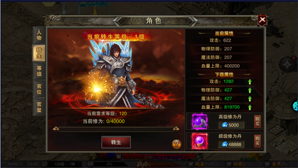 2、可使用等级丹进行升级