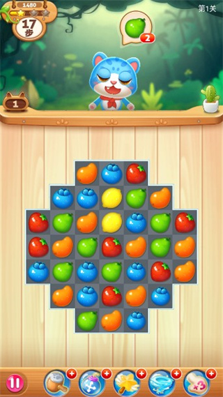 2、选择关卡开始游戏,滑动手指让三个及以上的相同水果横竖相连即可消除。