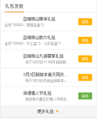 步骤2:登录专区首页,查看“礼包发放”的列表;
