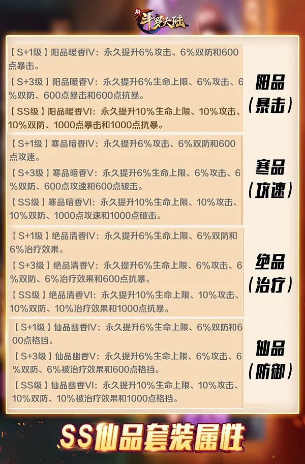 SS仙品套装属性 实力再上一层楼