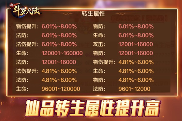 SS仙品转生 属性上限提升