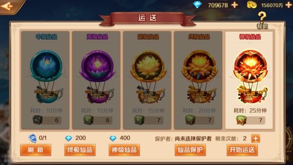 第二种是改版的仙品聚宝盆。运送新增的神级仙品可获得臻品仙品箱,打开臻品仙品箱有概率获得天地精华。