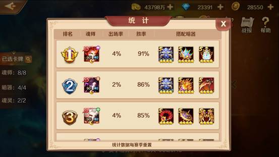 SS魂师在大师模拟战玩法中出现率极低,当然大家也懂,看见拿就完事了(胜率很能说明问题,稳居前几位)。