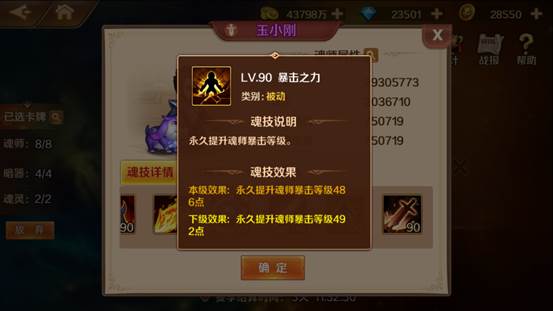 然后向大家安利一个A+魂师,那就是唐三的恩师——大师玉小刚。大家也许会好奇为什么会推荐这个魂师,这里需要大家看一下玉小刚的技能。玉小刚有三个技能都是都是提升暴击等级的(头发少加暴击?),只需要选一个大师放在助战,就能够给每名主力魂师提供486*3*0.25=364.5点暴击,收益还是比较可观的。当没什么A+好拿,你的队伍又能从暴击属性受益时,选个大师丢援助位会是个不错的选择。