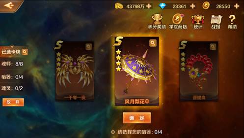 目前暗器有S及SS暗器可供选择,这一点上是要比魂师选取友好一些,出来的都是大家熟悉的暗器。