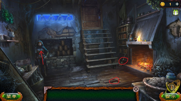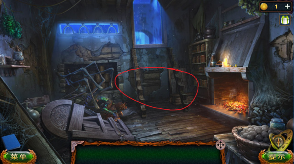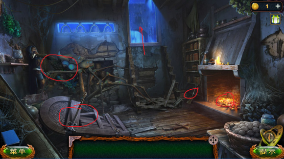 2、地上的烂木门,捡铰链。捡壁炉边的铁铲,去壁炉铲燃烧的煤 ,把燃烧的煤浇到蜘蛛人的眼睛里,然后用铰链插蜘蛛人。