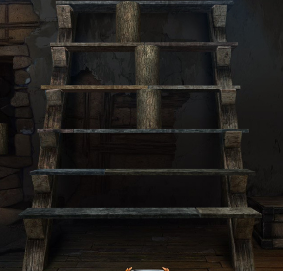 8、打开木门,出去。地上有木箱,缺失圆形木块。