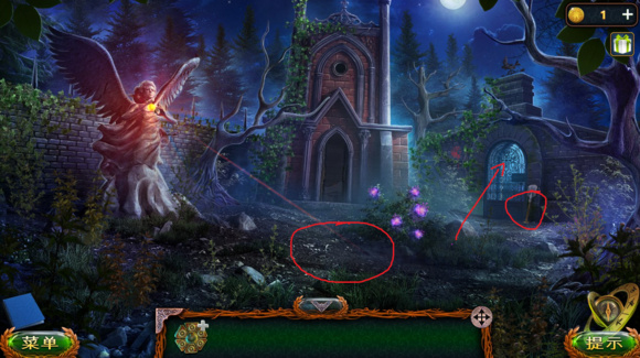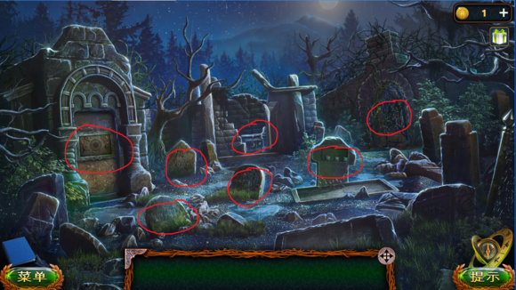 5、在一个墓碑有点象蘑菇,安石块,并拼出maaron,打开秘道,进去。