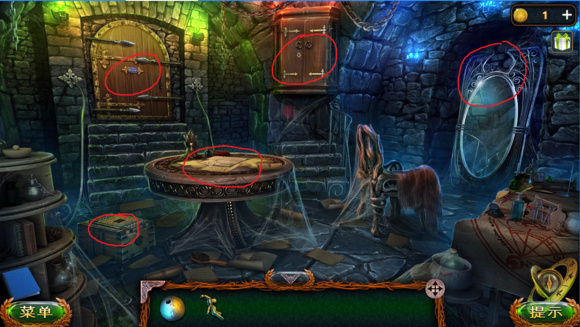 6、桌子,查看记忆镜子的使用说明,捡钥匙,按桌子上的按钮,得到时间沙粒、男人石像。