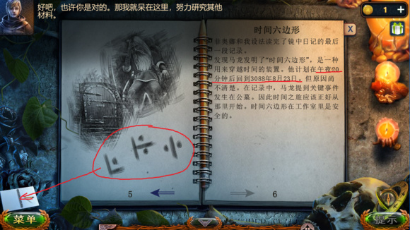 见到马龙,得知开大门的密码、使用时间六边形回到过去的具体时间,(画面左下角的笔记本会自动记载,记不住,点它打开查看)。3088年8月23日午夜20分。
