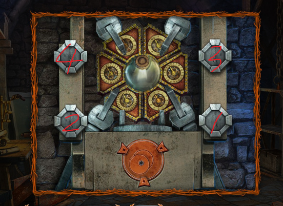 工作台,把金属条把夹具上,用锤子砸弯得铁环。铁钩安起降台上,升起铁箱,得机械构件。